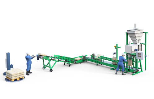 «Гамма-10» (шнековый) + бункер 0,6 м3 + конвейер отводной (10 кг) + машинка мешкозашивочная автоматическая